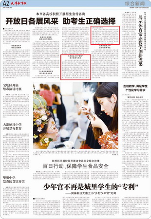 6月29日,《天津教育报》A2版以“开放日各展风采 助考生正确选择”为题报道了我市各高校积极开展招生宣传咨询情况,以“威客电竞 ‘借网’展示优势与特色”为小标题报道了我校相关工作开展情况。